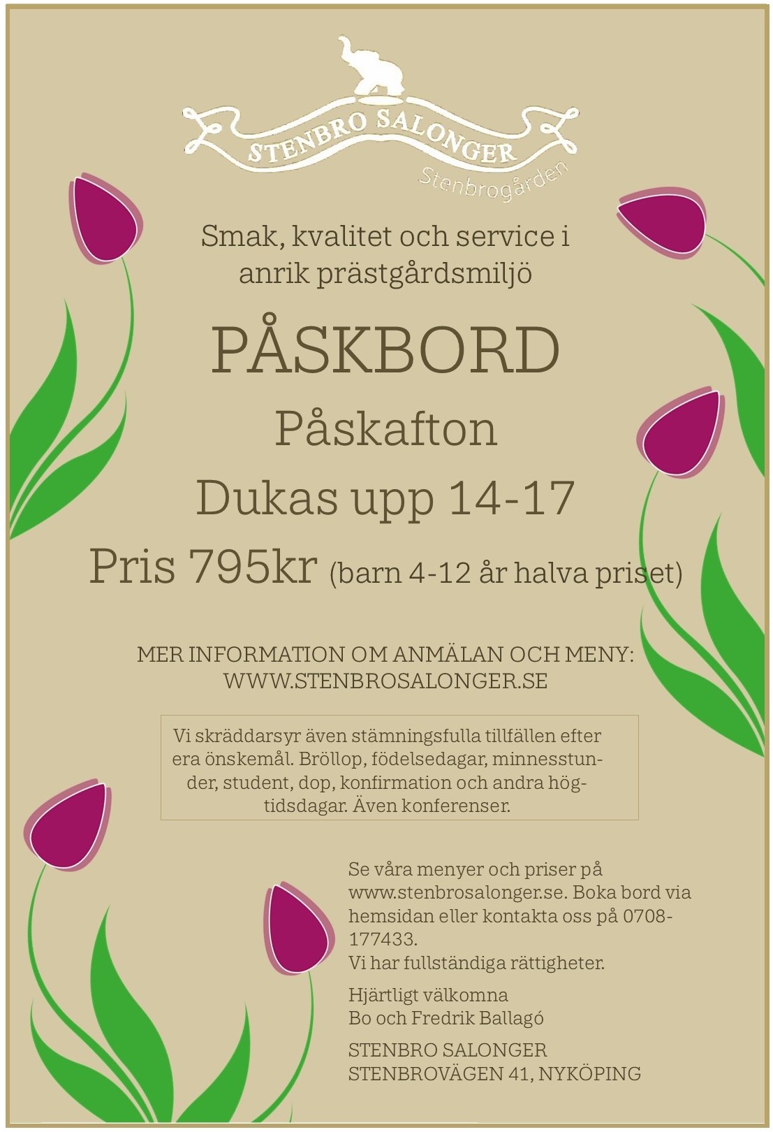 Hjärtligt välkommen till Stenbro Salonger! Upplev en anrik och mysig prästgårdsmiljö, toppservice och genuin kvalitet.